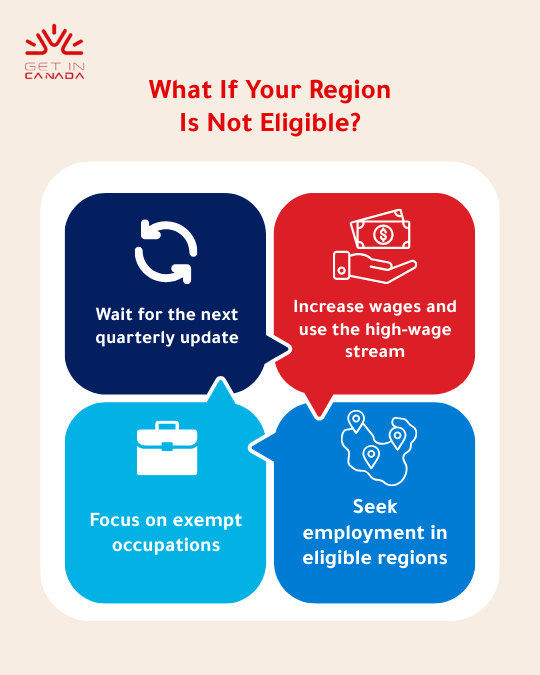 If a job offer is located in a census metropolitan area with an unemployment rate of 6% or higher, both employers and foreign workers should reassess their options before applying. These may include adjusting wages to qualify under the high-wage stream, focusing on exempt occupations, or waiting for the next quarterly update when regional eligibility may change.